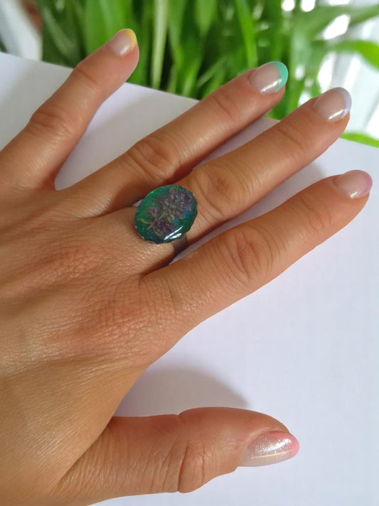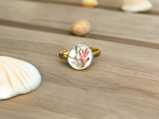 Des bijoux faits main, porteurs de petits fragments de nature. Une fleur, une écorce, un brin de